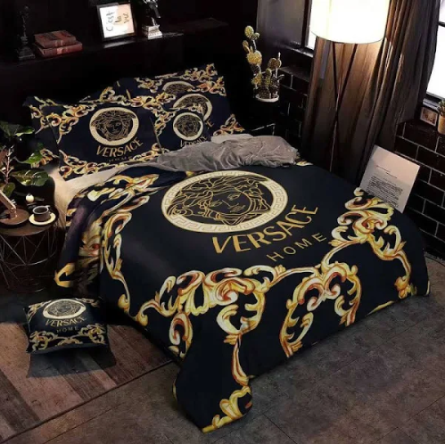 Best Versa.ce Golden Logo With Golden Flames Bedding Set