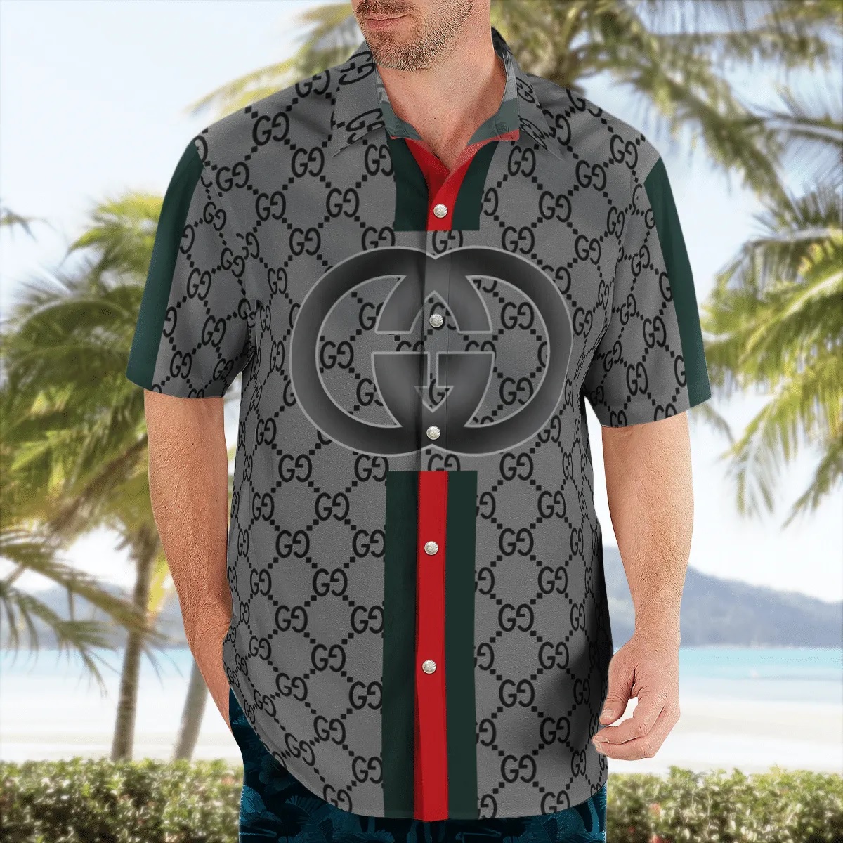 GC grey stripes luxury brand premium fashion hawaii shirt for men PEA31230