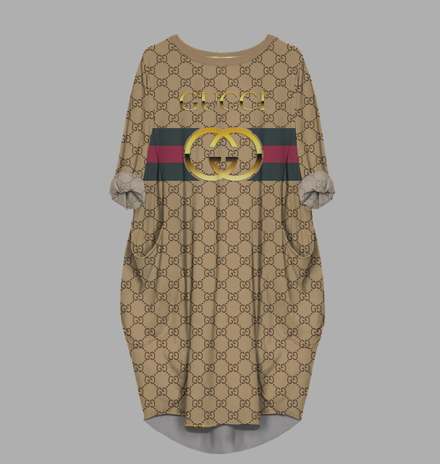 Features: Roll-up long sleeves, round neckline, casual pullover style, oversized loose fit, midi knee length, with pockets at both sides.
