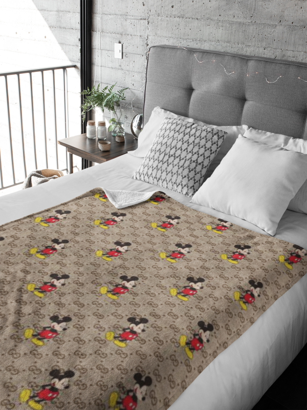 Gucci Mickey Luxury Brand Logo Premium Blanket Fleece Home Decor