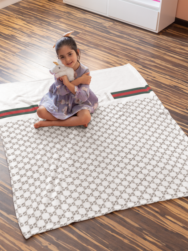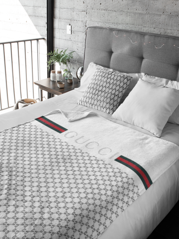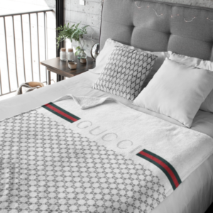Gucci White Luxury Brand Logo Premium Blanket Fleece Home Decor