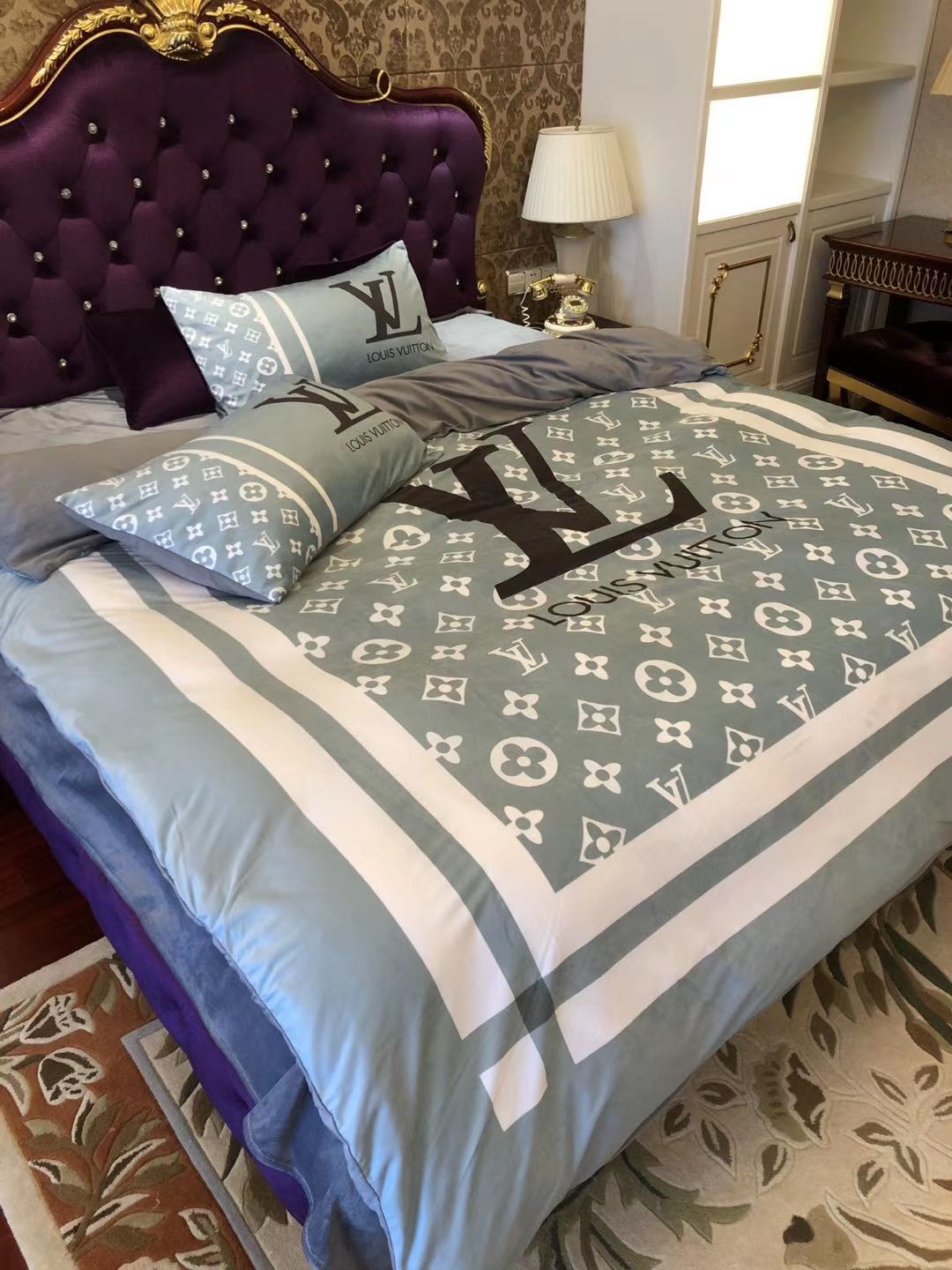 Louis Vuitton Smokey Blue Monogram Comforter Bedding Set