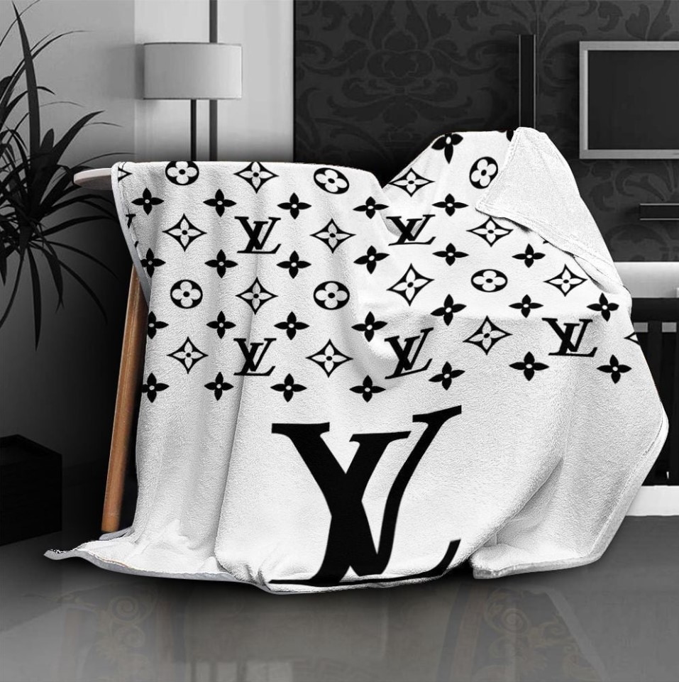 Louis Vuitton White Fashion Logo Luxury Brand Blanket Fleece Home Decor LVT00257