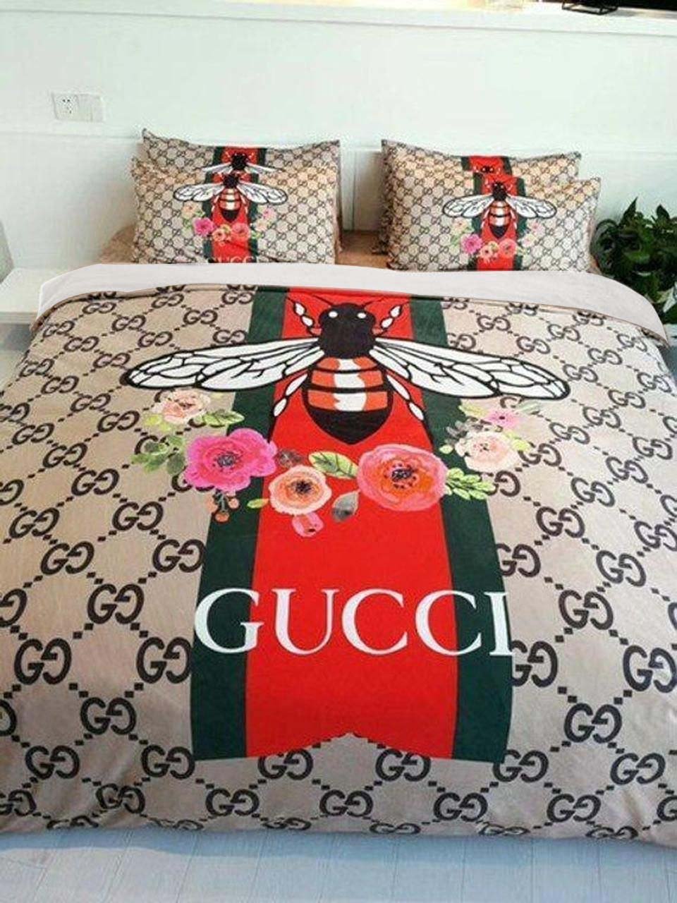 Luxury GC Floral Bee In Monogram BG With Vintage Web Bedding Set